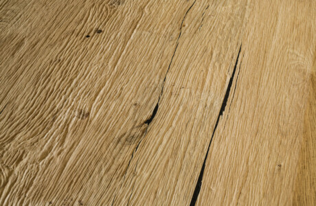 We have developed an embossing die from the unique surfaces of real old wooden beams. In an innovative production process, we press this natural structure into various wooden surfaces. Our embossing DIAMANT combines striking oak veneers with the surface structure of old beams. The embossing depth on the front here is 1-2 mm. If the simple DIAMANT embossing is too “well-behaved” for you, we recommend DIAMANT 2.0 – it has an embossing depth of 2-3 mm.