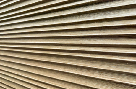 Unsere wellenförmige Echtholz-Oberfläche FLOW bringt alles in der Sauna wortwörtlich zum fließen.